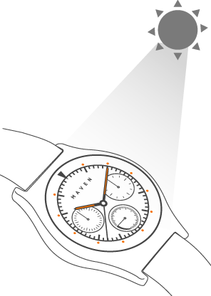 1. Place the dial facing upward to ensure effective light absorption.