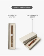 • Sleekly packed with a stainless steel mesh strap watch and an extra quick-release leather strap, this bundle makes style changes simple, fast, and tool-free.